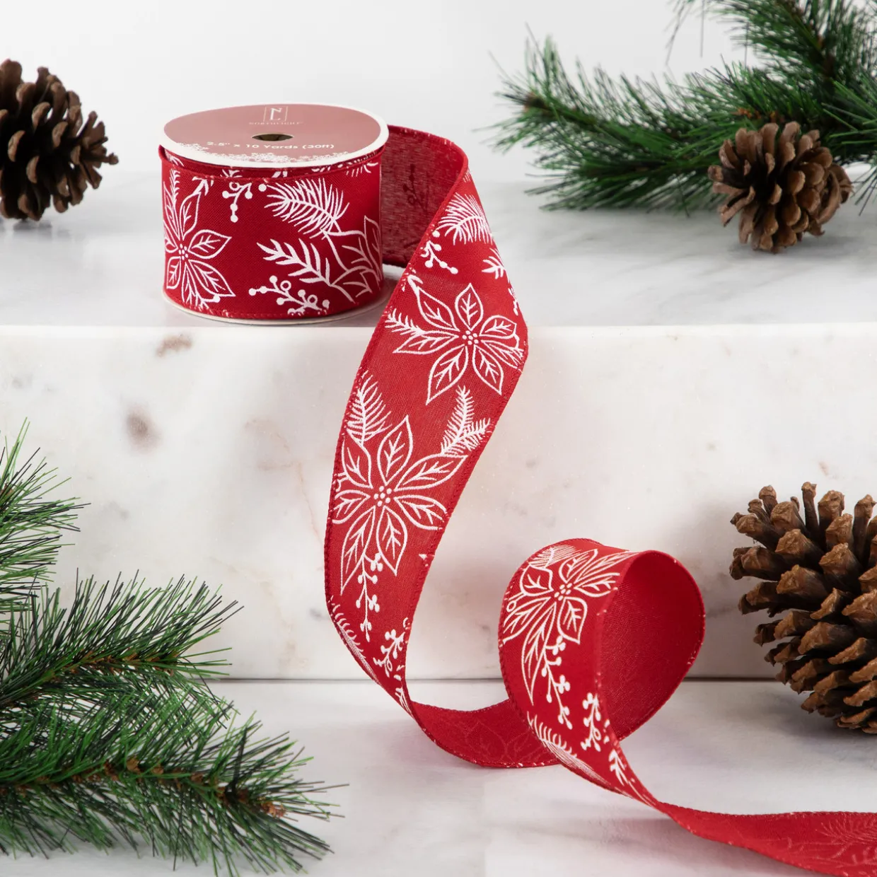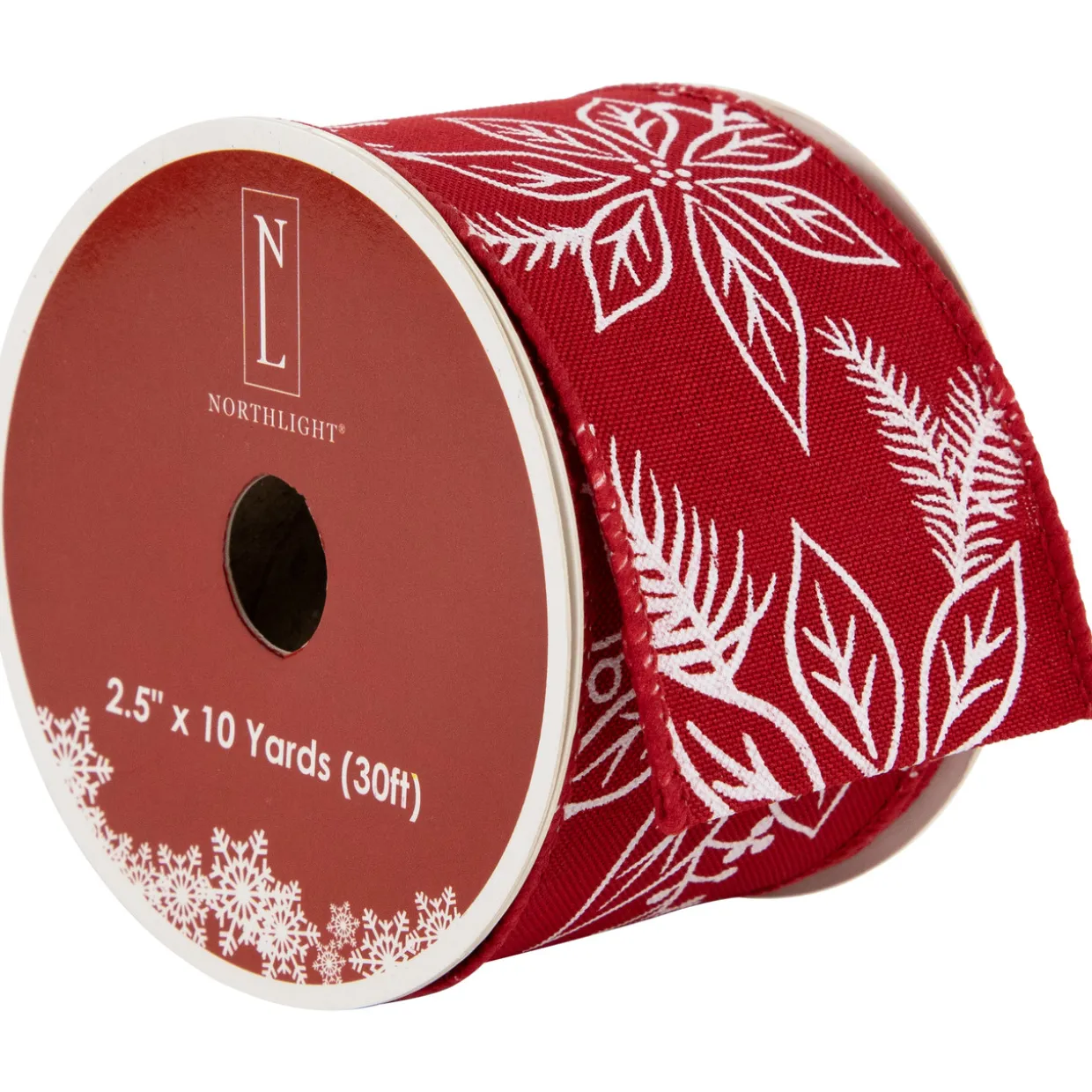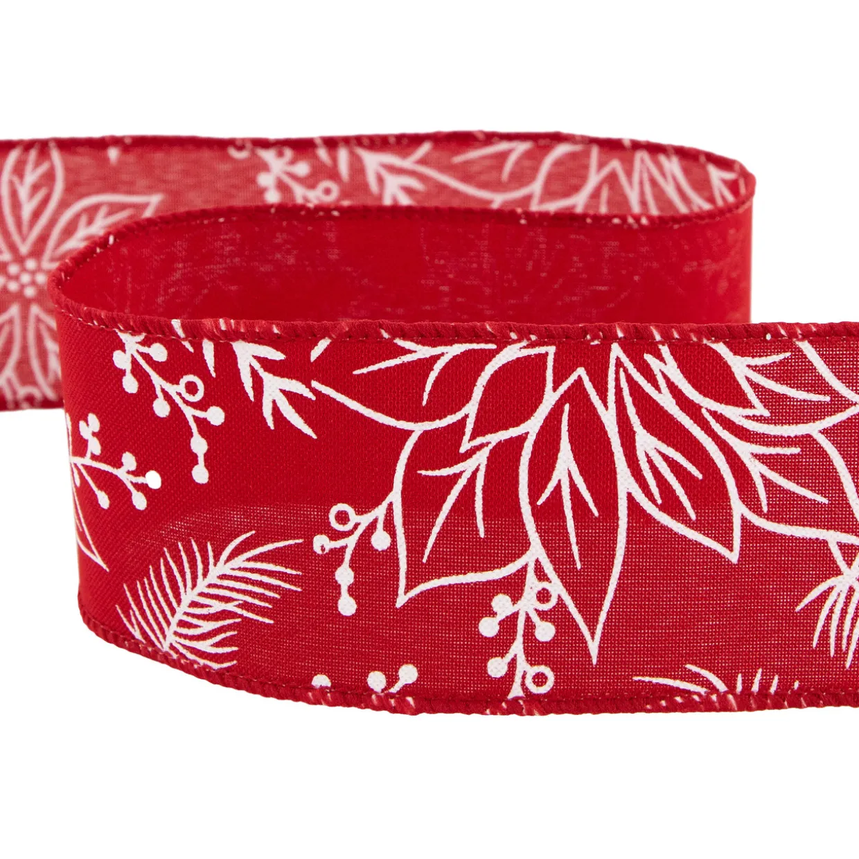 - Christmas Ribbon With White Floral Pattern