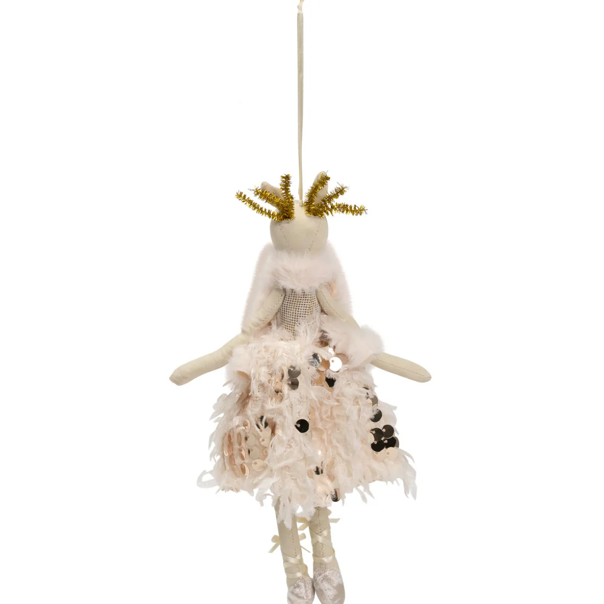 - Feather tutu with sequins; ballerina slippers and faux fur scarf