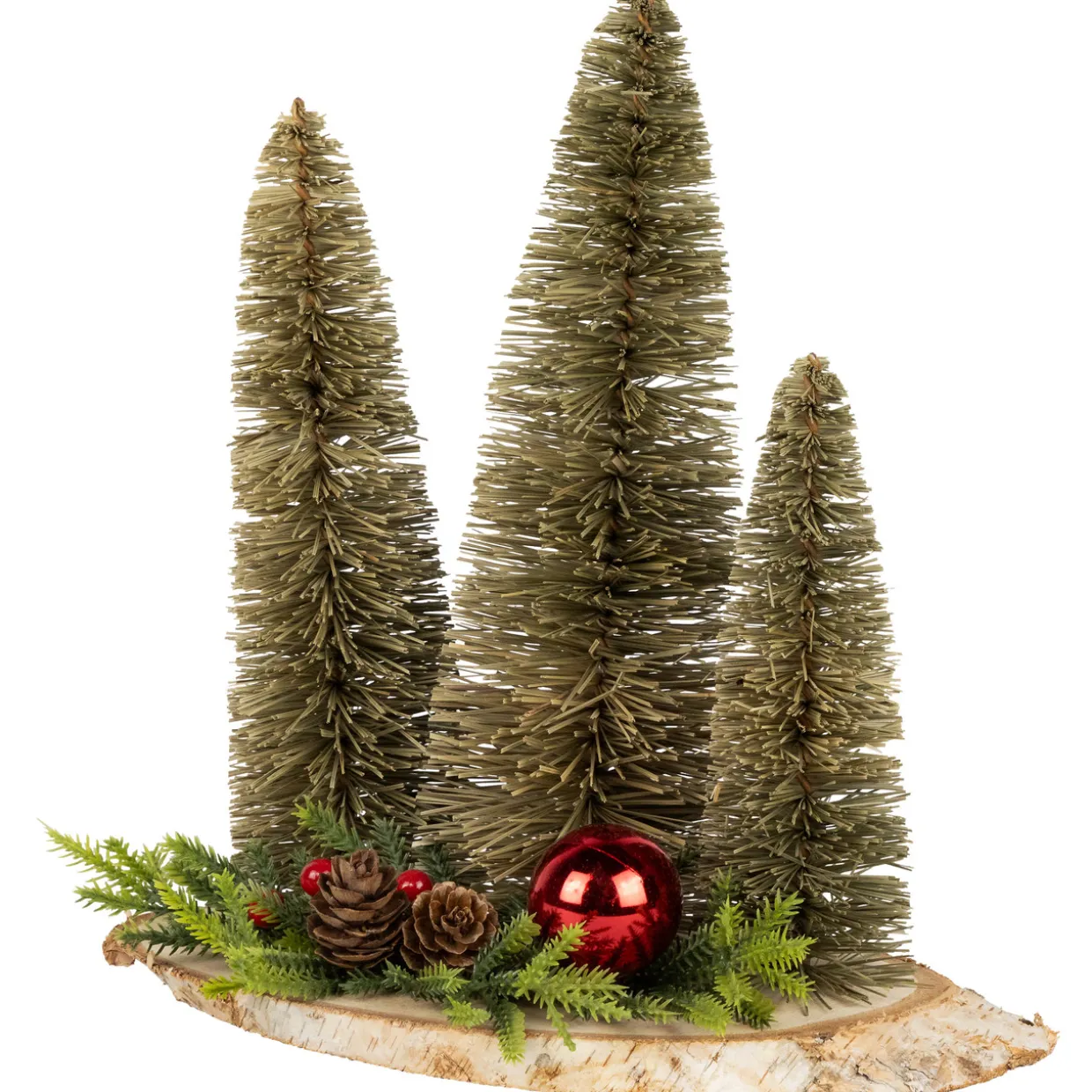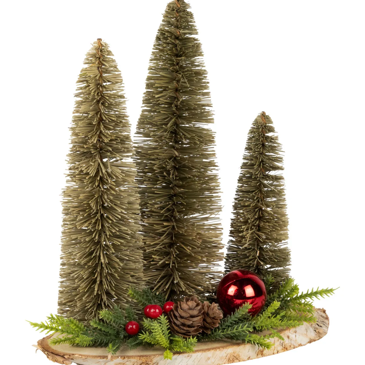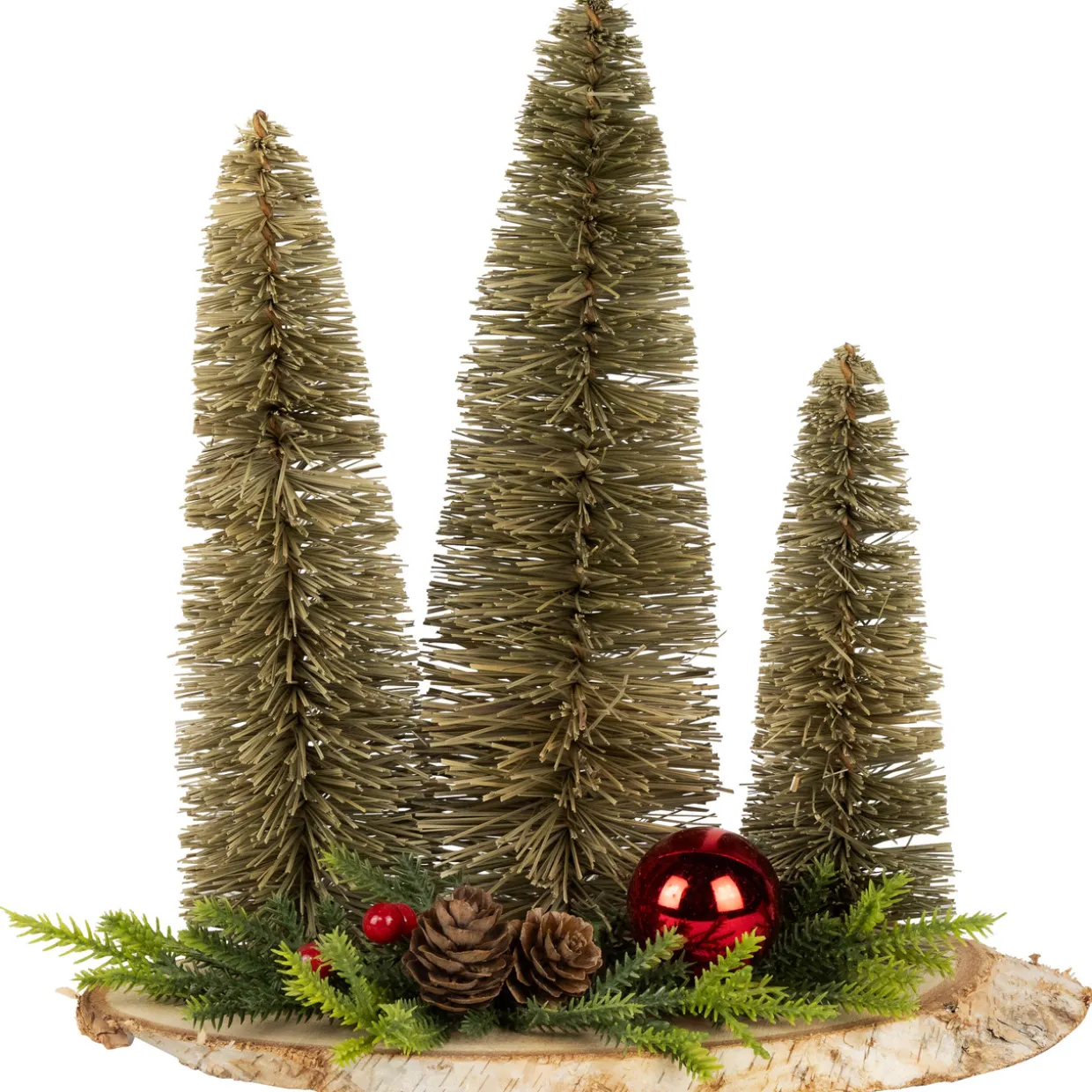 - Bottlebrush Trees On Faux Wood Base Christmas Decoration