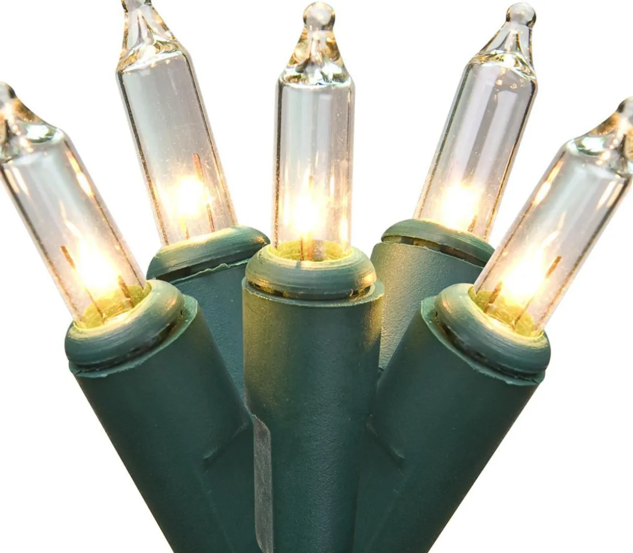 - 100 Count Clear Mini Christmas Lights With Green Wire