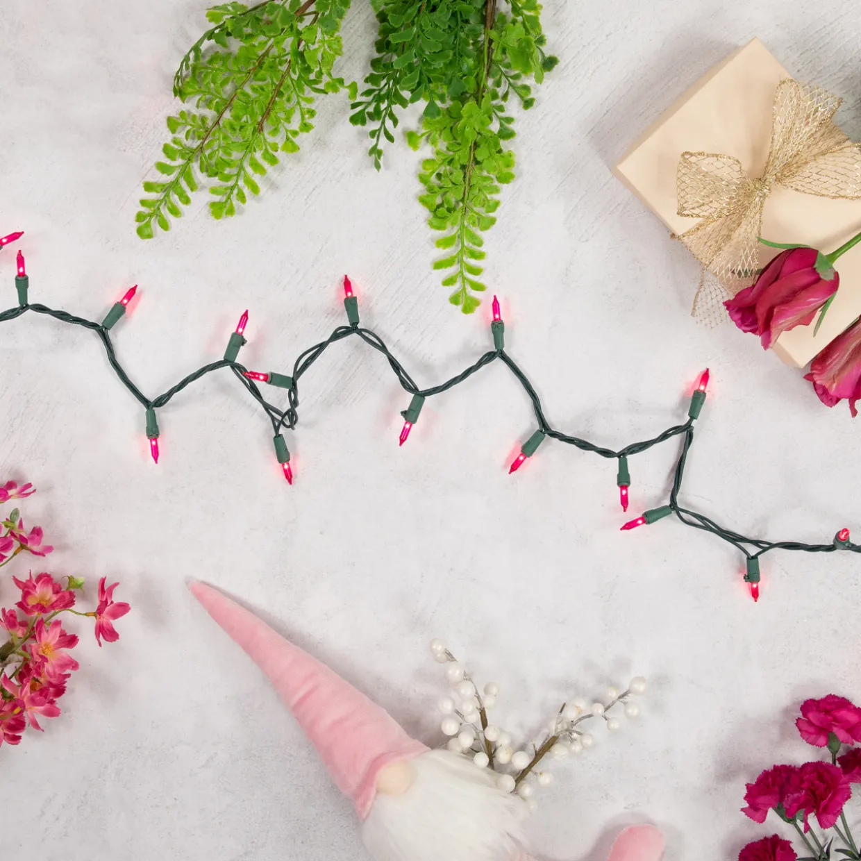 - Pink Mini Christmas String Lights On A Green Wire