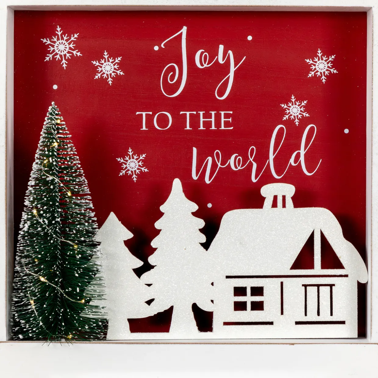- Pre-Lit Glittered Shadow Box Christmas Wall Decoration