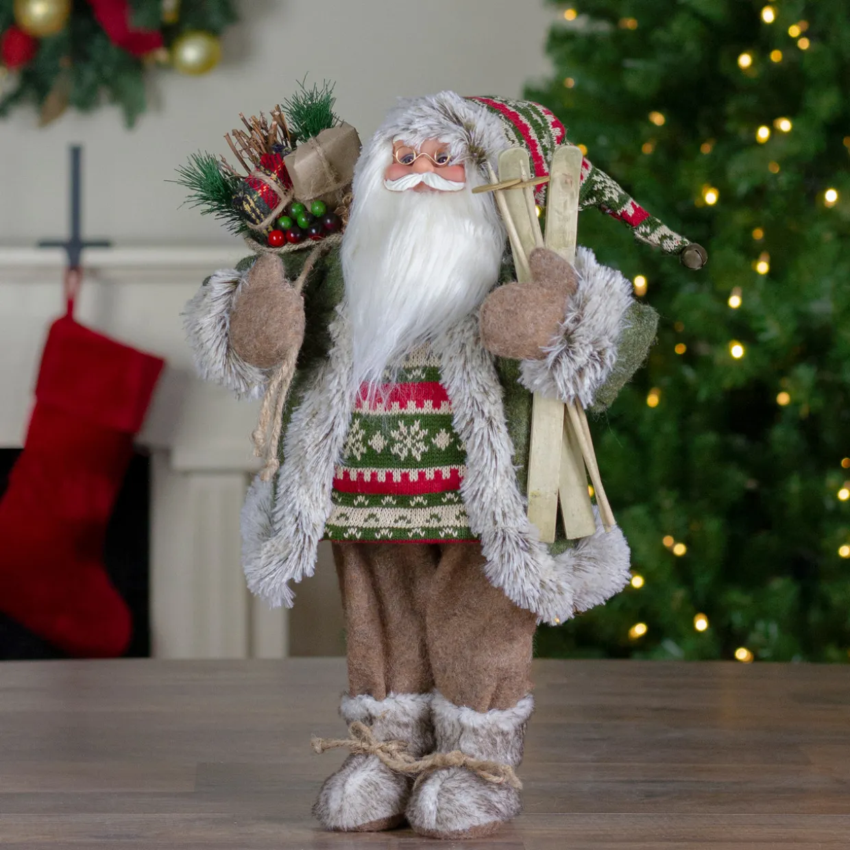 - Standing Santa With Presents And Skis Christmas Figure