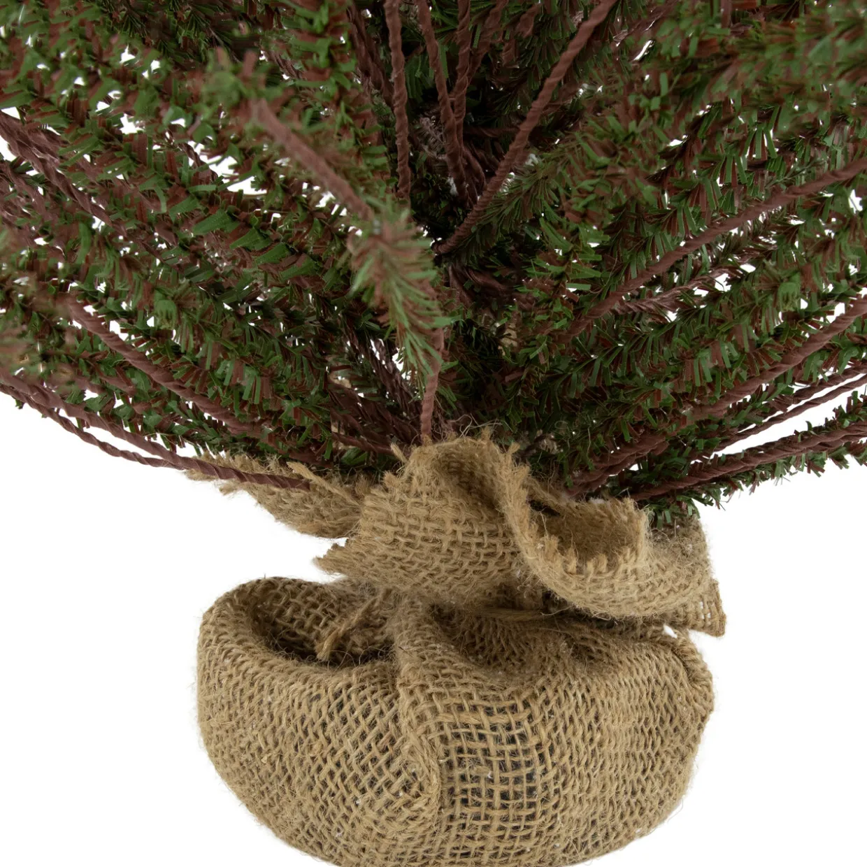 - Comes with rustic burlap base; medium profile tree