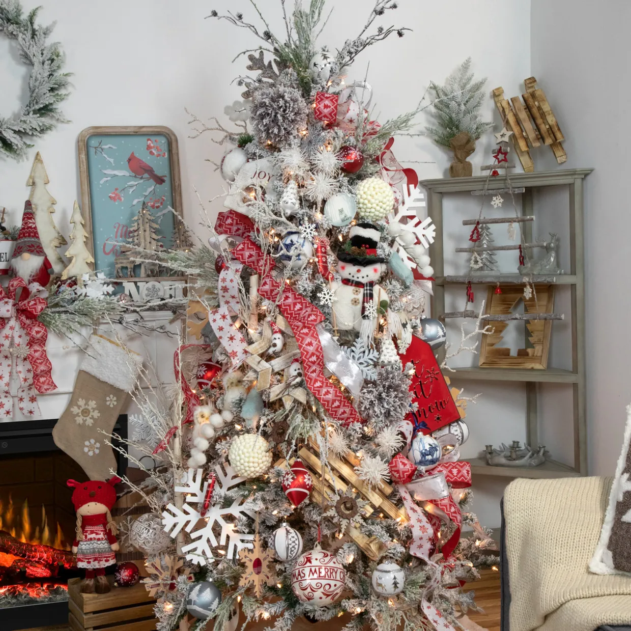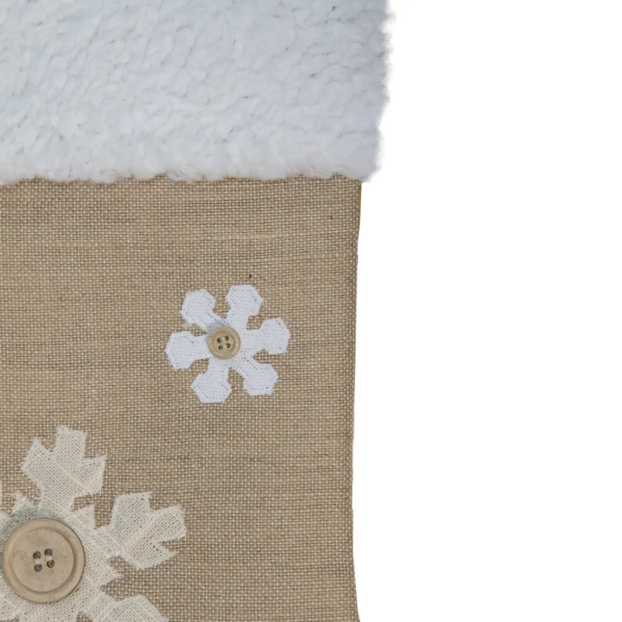 - Embroidered snowflakes with beige buttons in the center