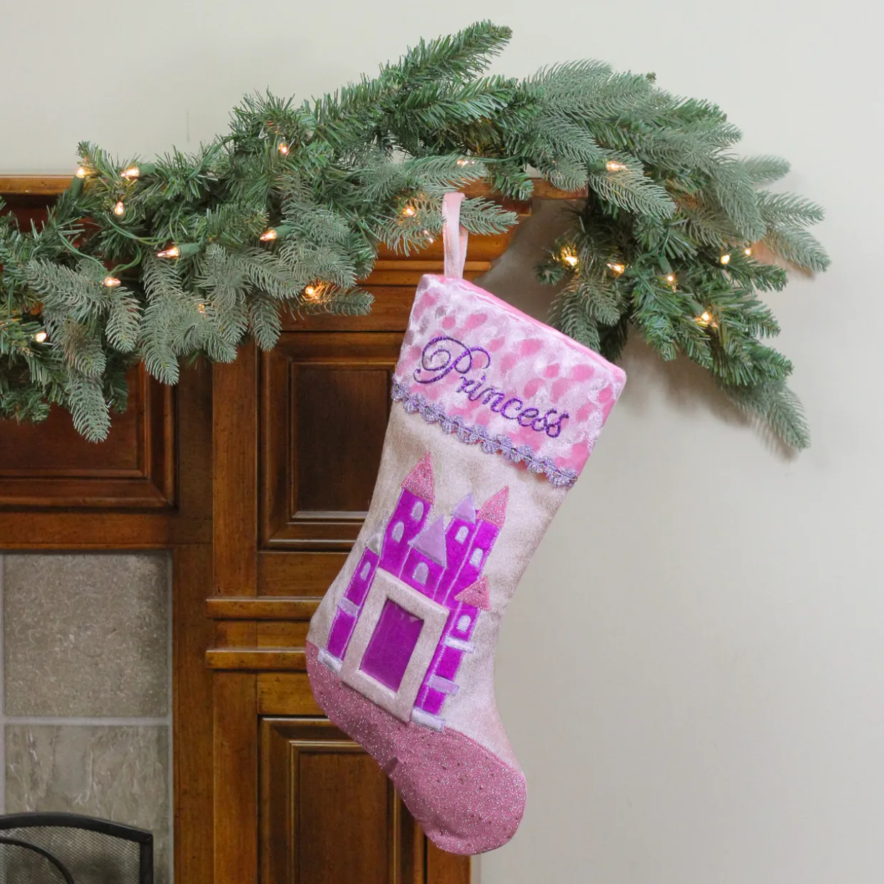 - Pink And Purple Velvet “Princess” Embroidered Christmas Stocking