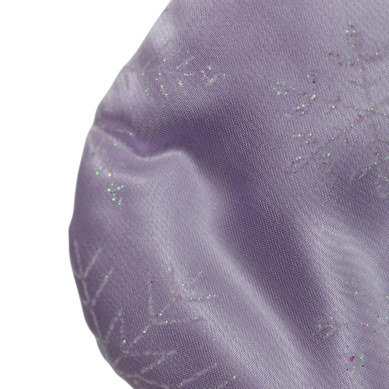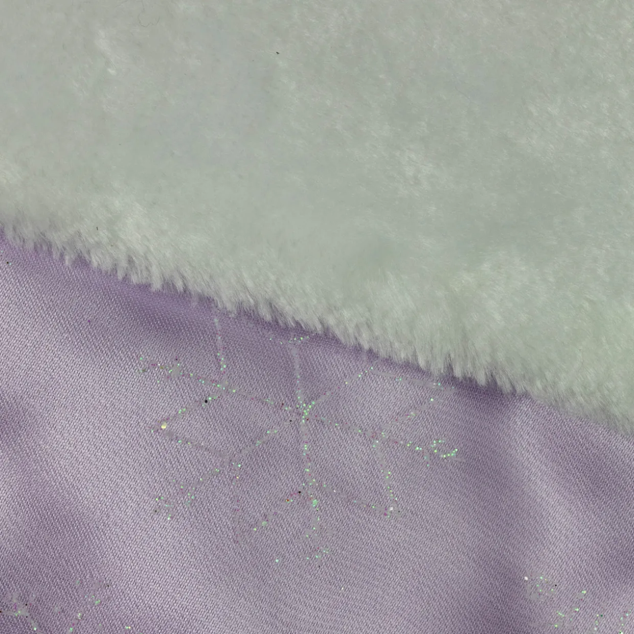 - Features a sheer overlay accented with glittery iridescent snowflakes