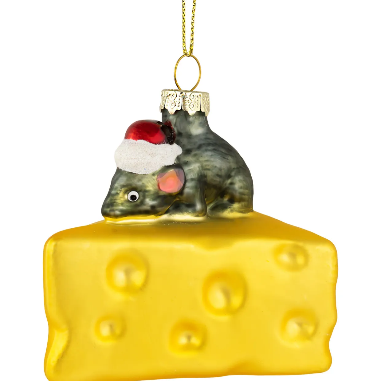- Glass Christmas Ornament Of A Mouse With Cheese