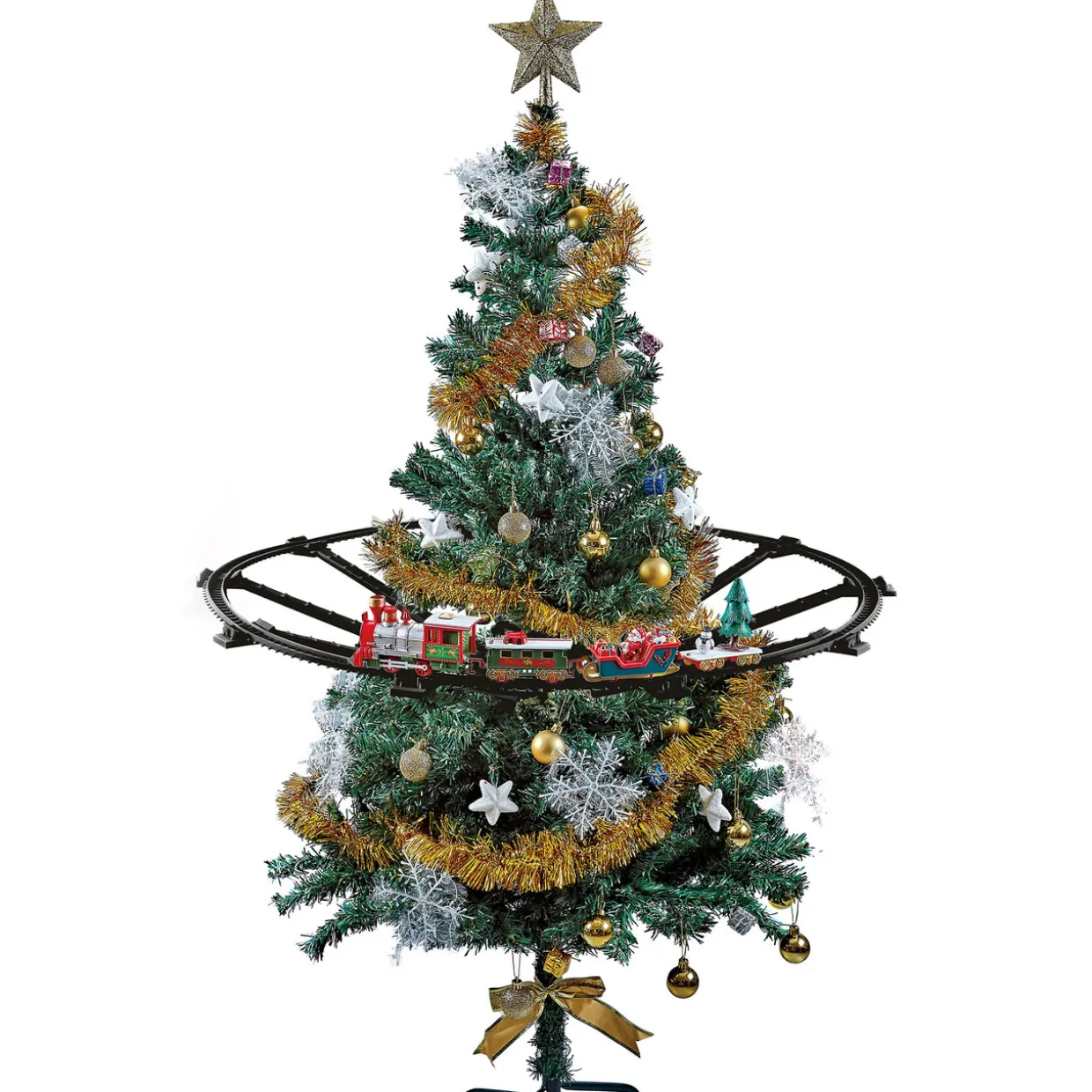 - Track can be mounted on your Christmas tree trunk or on the floor