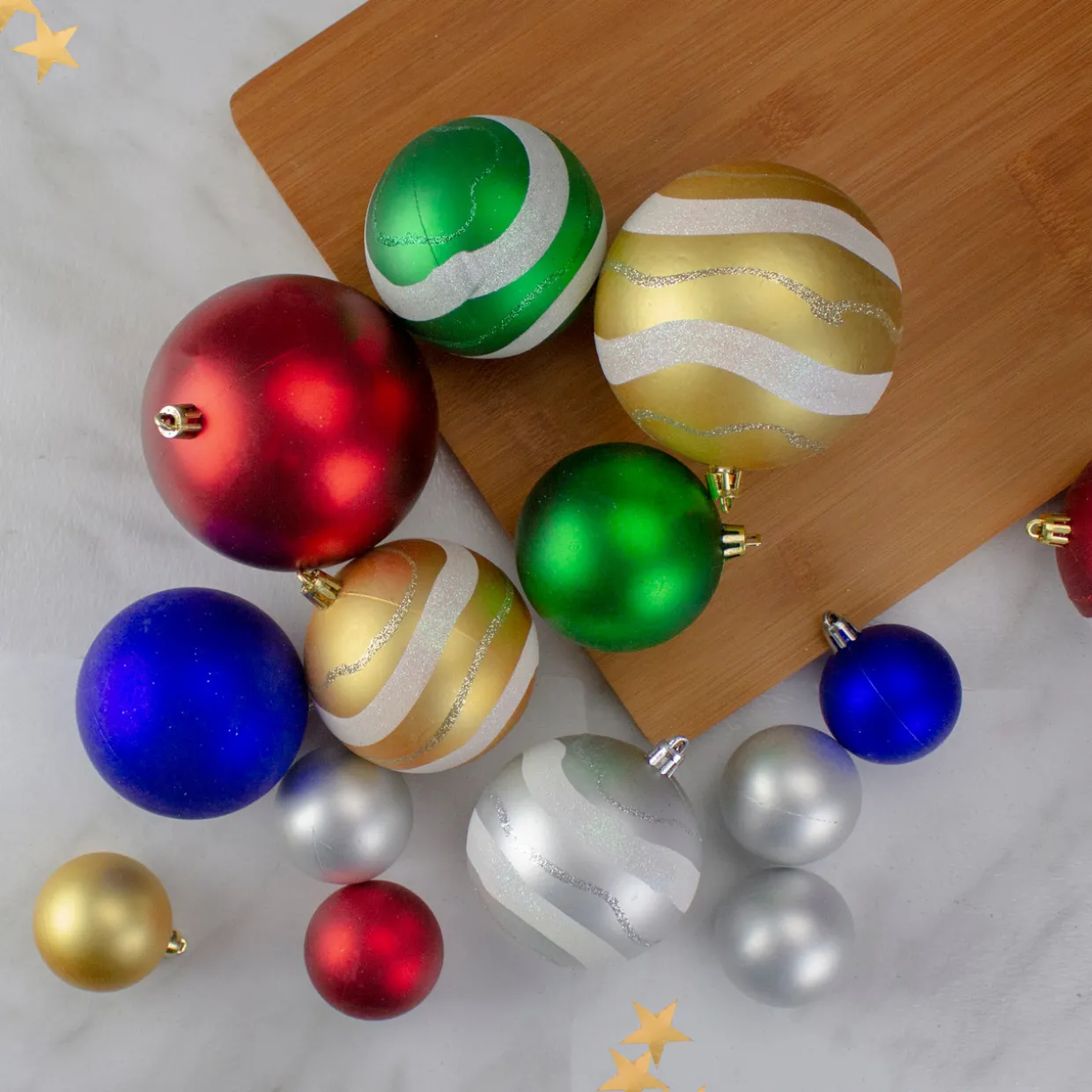 - Balls are equipped with gold and silver ornament caps
