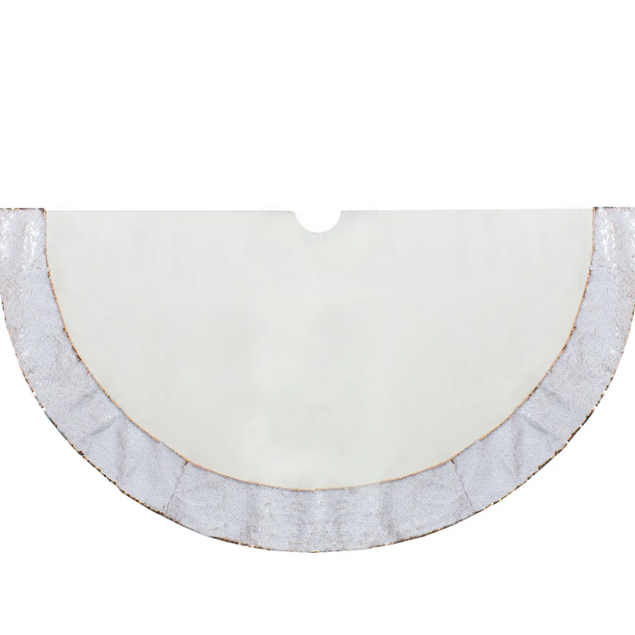 - White With Reversible Sequin Trim Christmas Tree Skirt