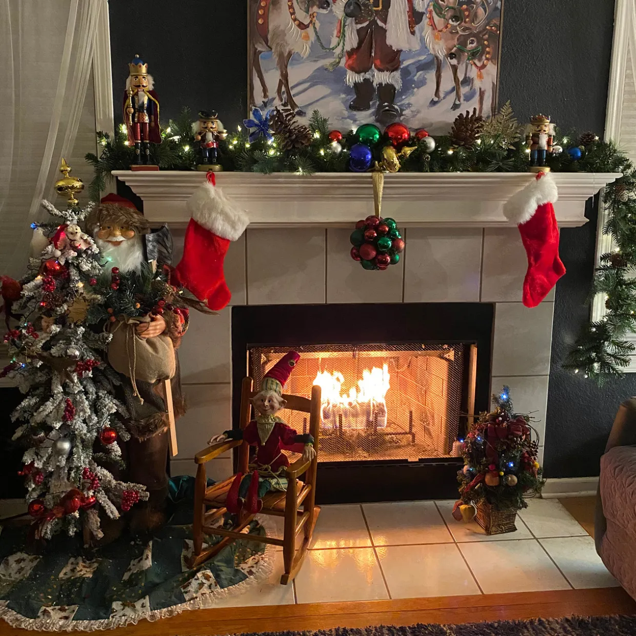 - Rustic Standing Santa Claus With Alpine Christmas Tree Figure