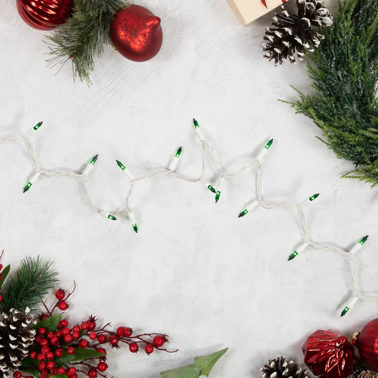 - Green Mini Christmas Light Set With White Wire