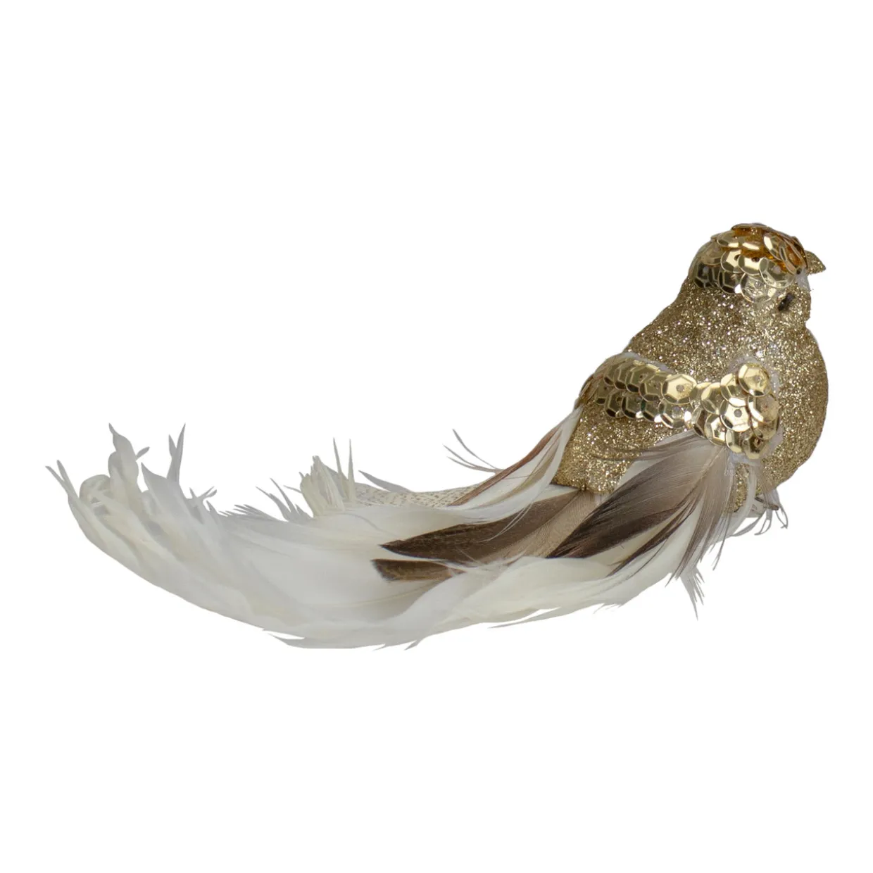 - Small Gold Bird With Faux Feather Tail Christmas Ornament