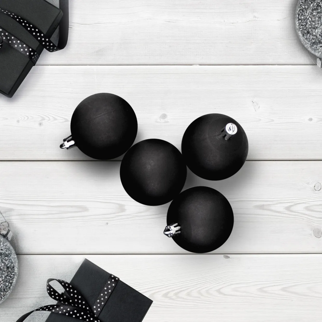 - 60 Count Black Shiny Hanging Christmas Ball Ornaments