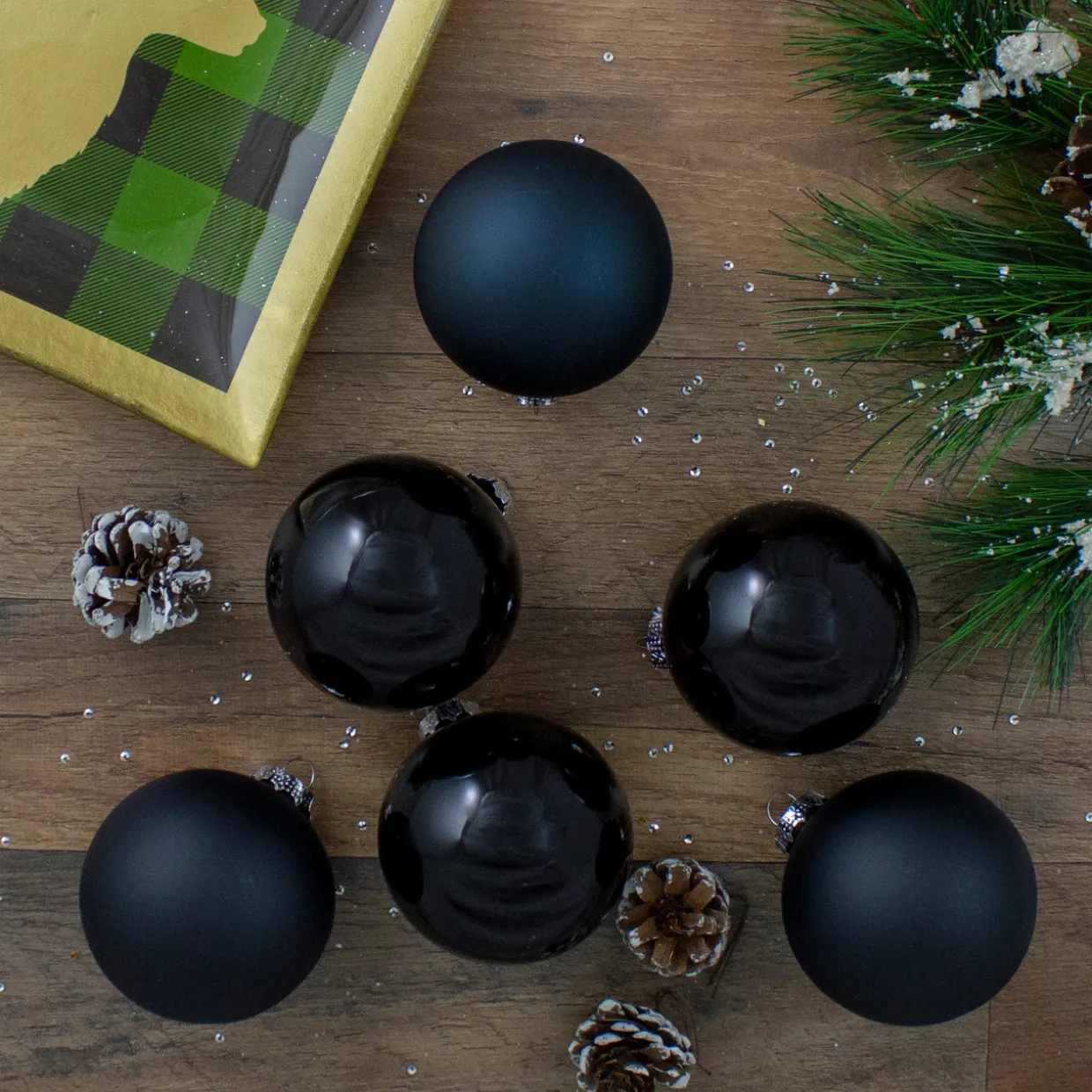 - 6Ct Black Ball Ornaments With Matte And Shiny Finish