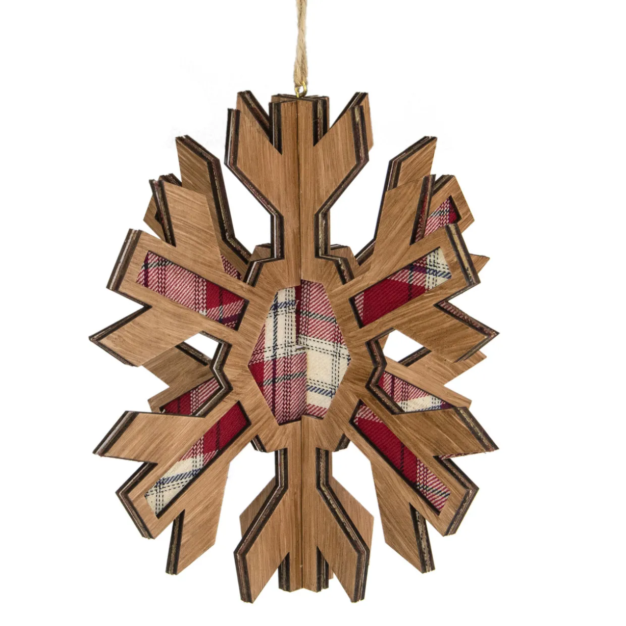 - Faux Wood Printed Snowflake Christmas Ornament
