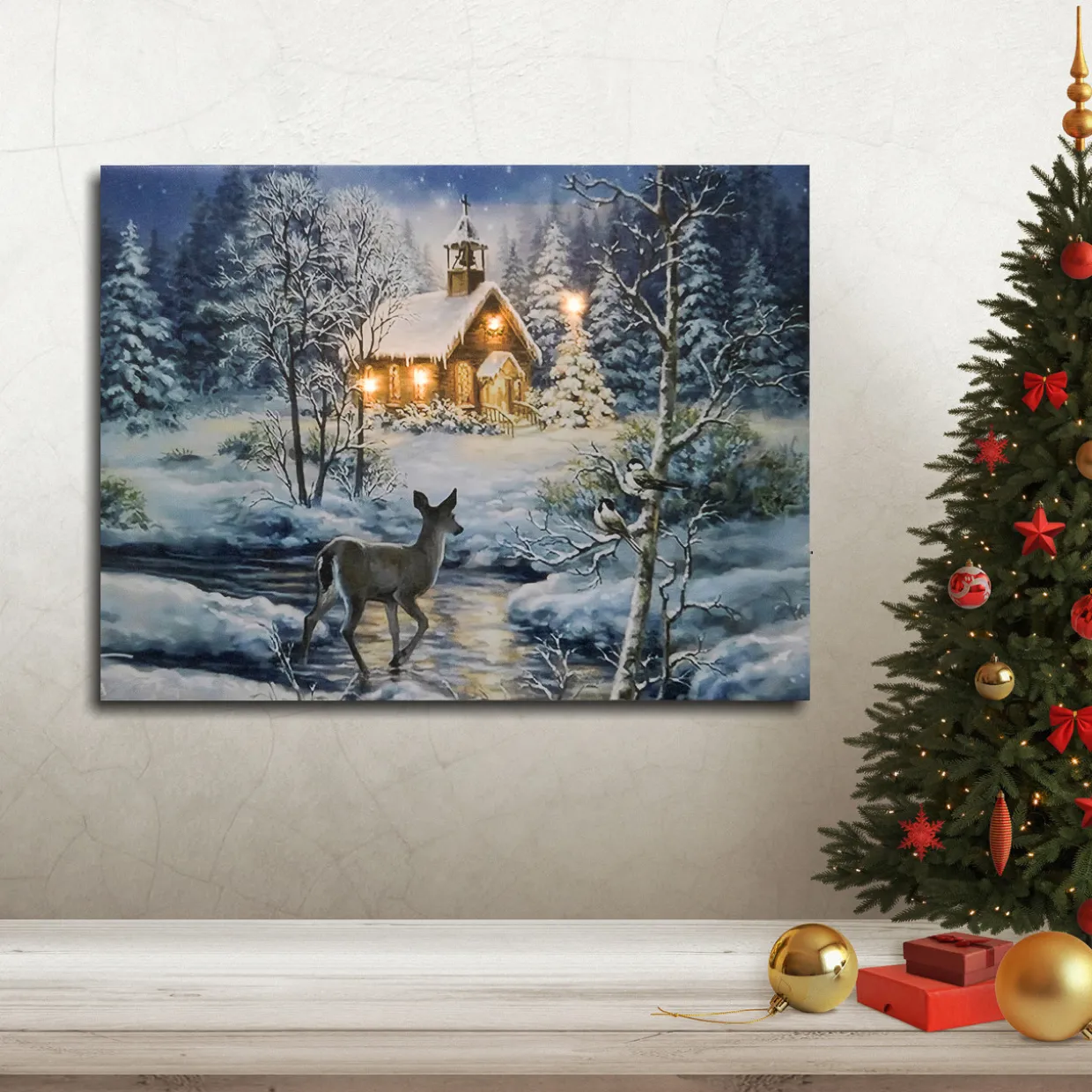 - Includes: Full Color Printed Canvas Wall Art with LED Lights and a Remote Control