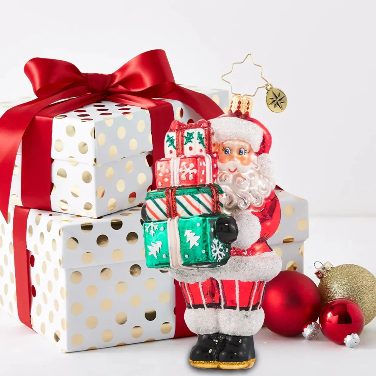- Standing Santa with presents hanging Christmas ornament