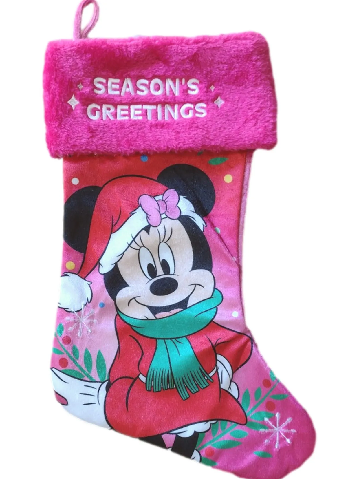 Disney Pink & Red Minnie Mouse Holiday Christmas Stocking