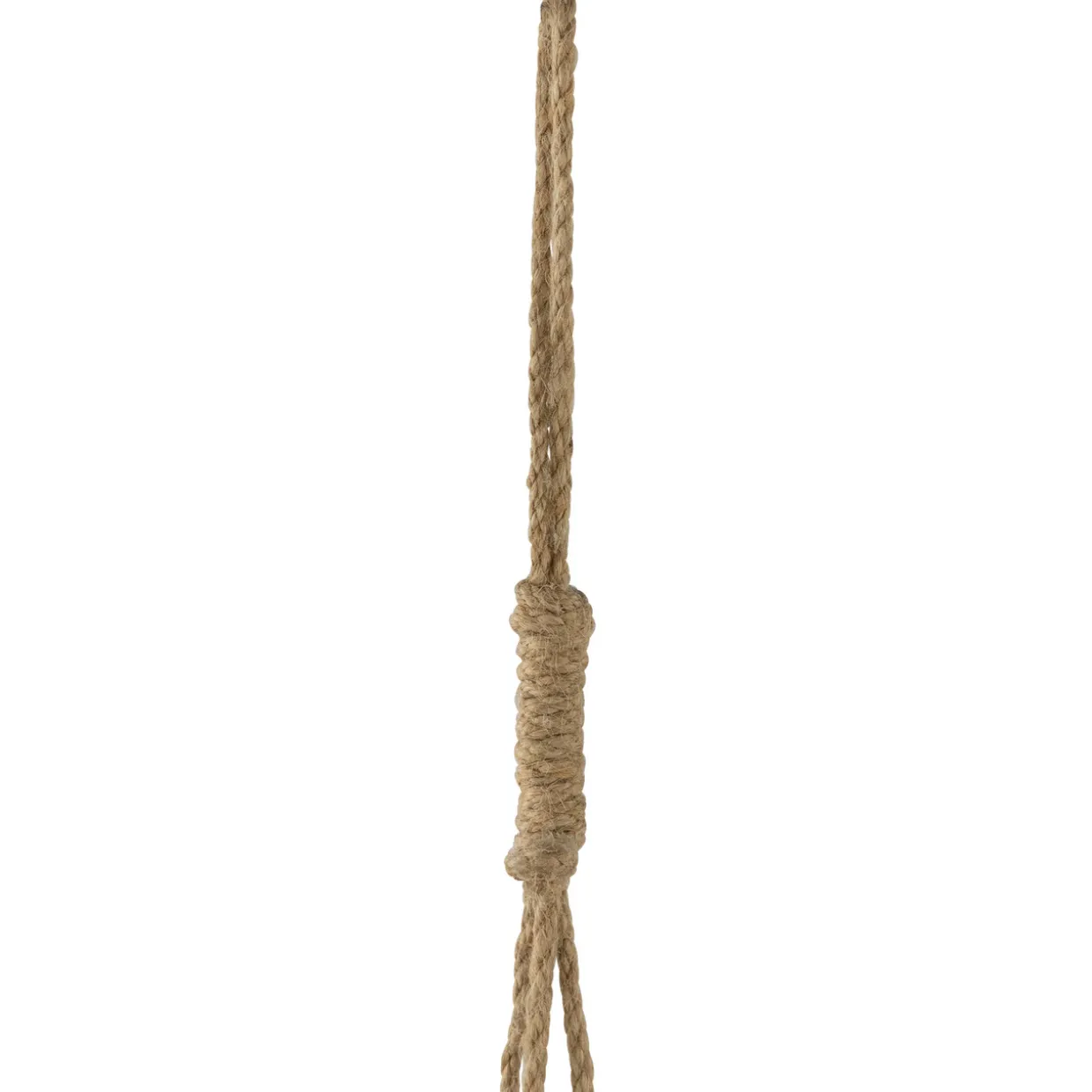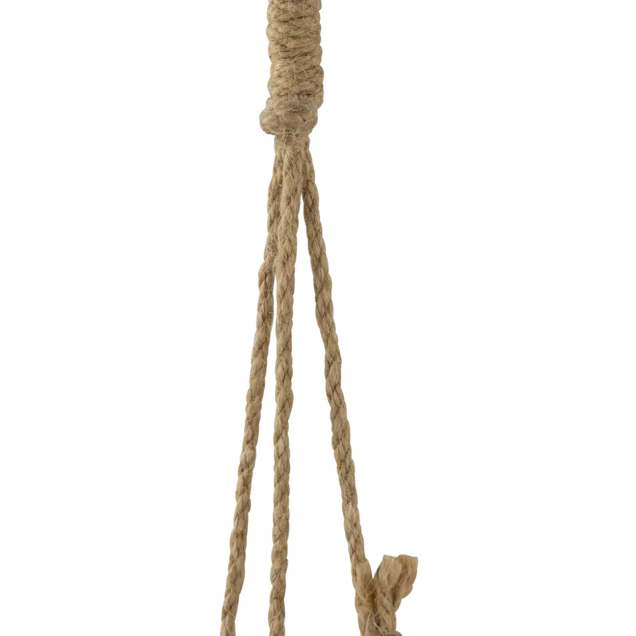 - Three metal bells hang on a jute rope