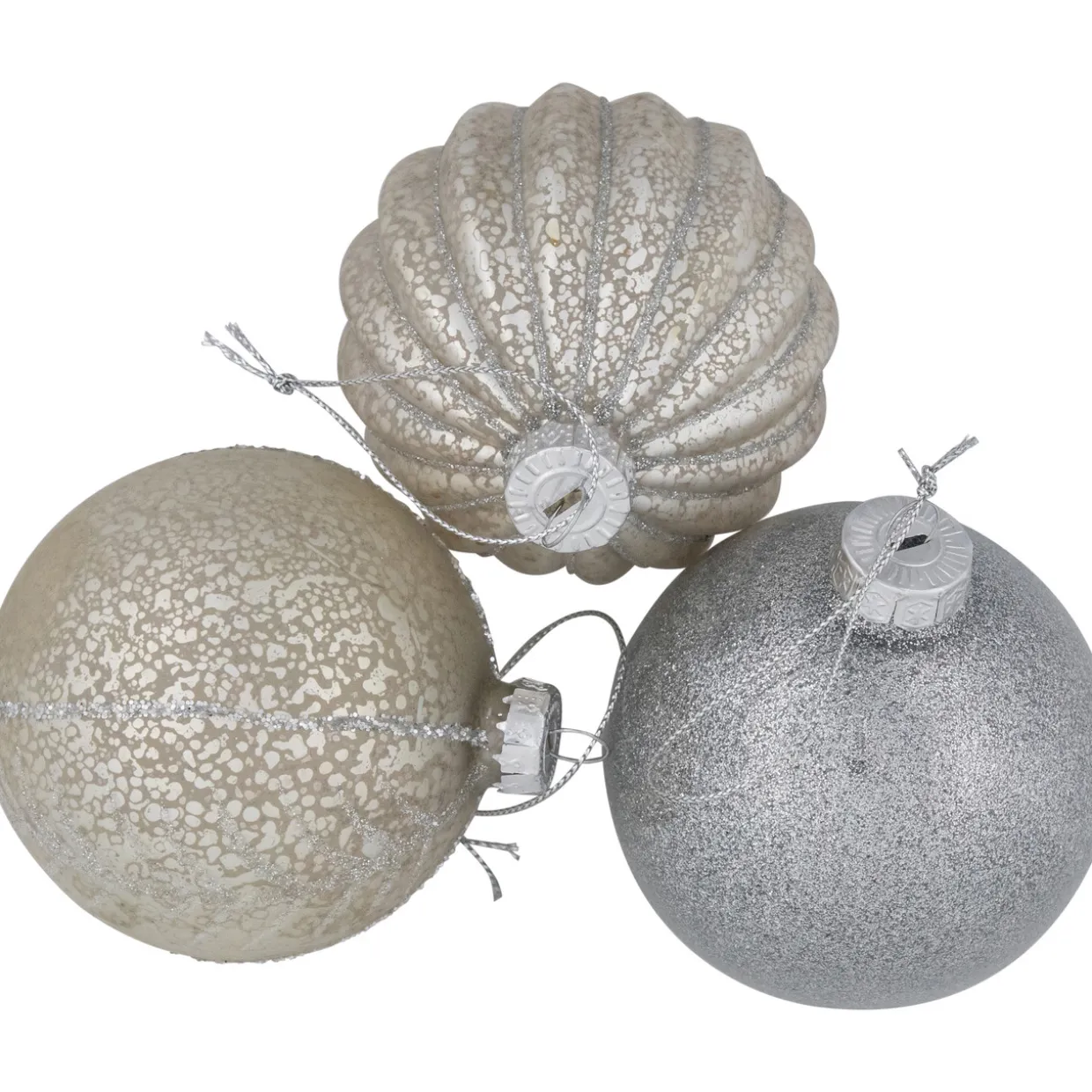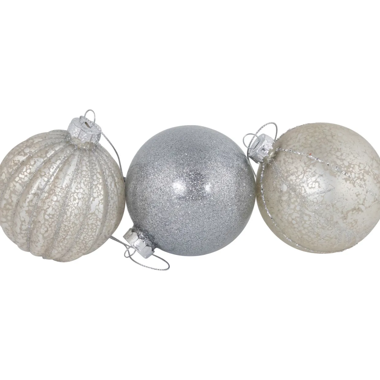 - Set Of 9 Silver Glass Ball Christmas Ornaments