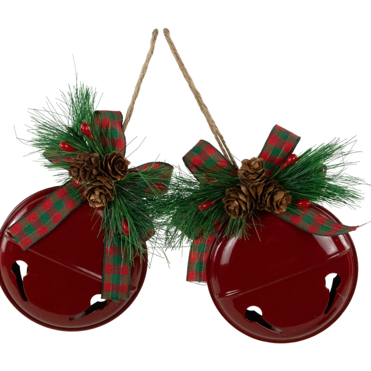 - Set Of 2 Red Christmas Jingle Bell Disc Ornaments