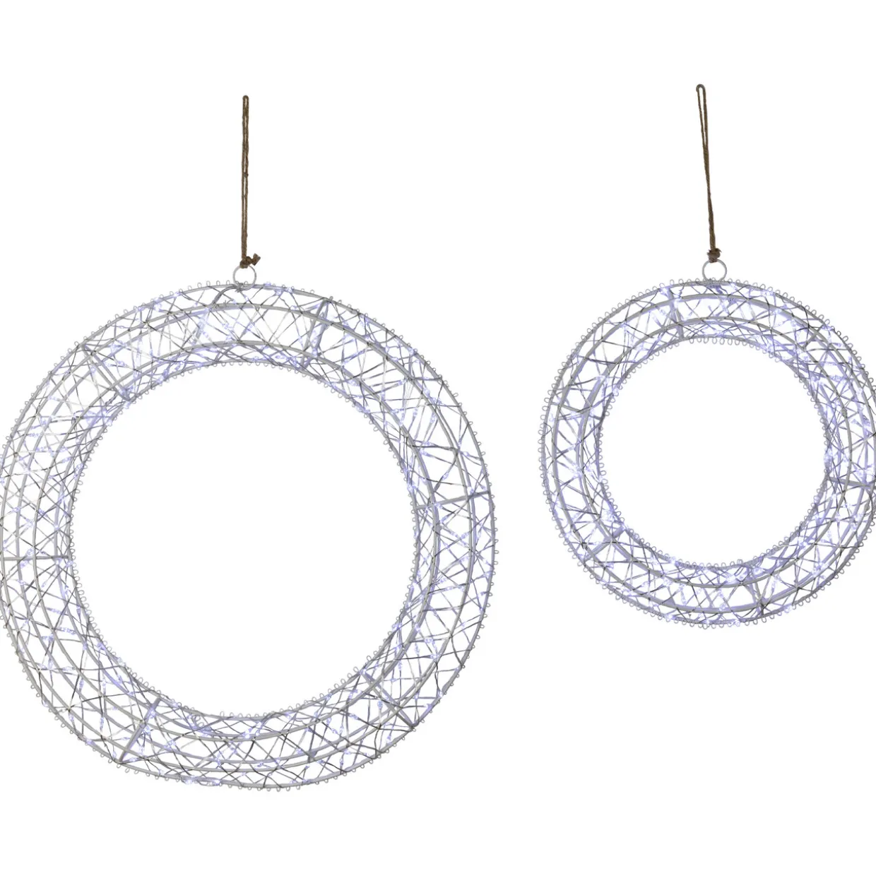 - Set Of 2 White Wire 3D Christmas Wreaths