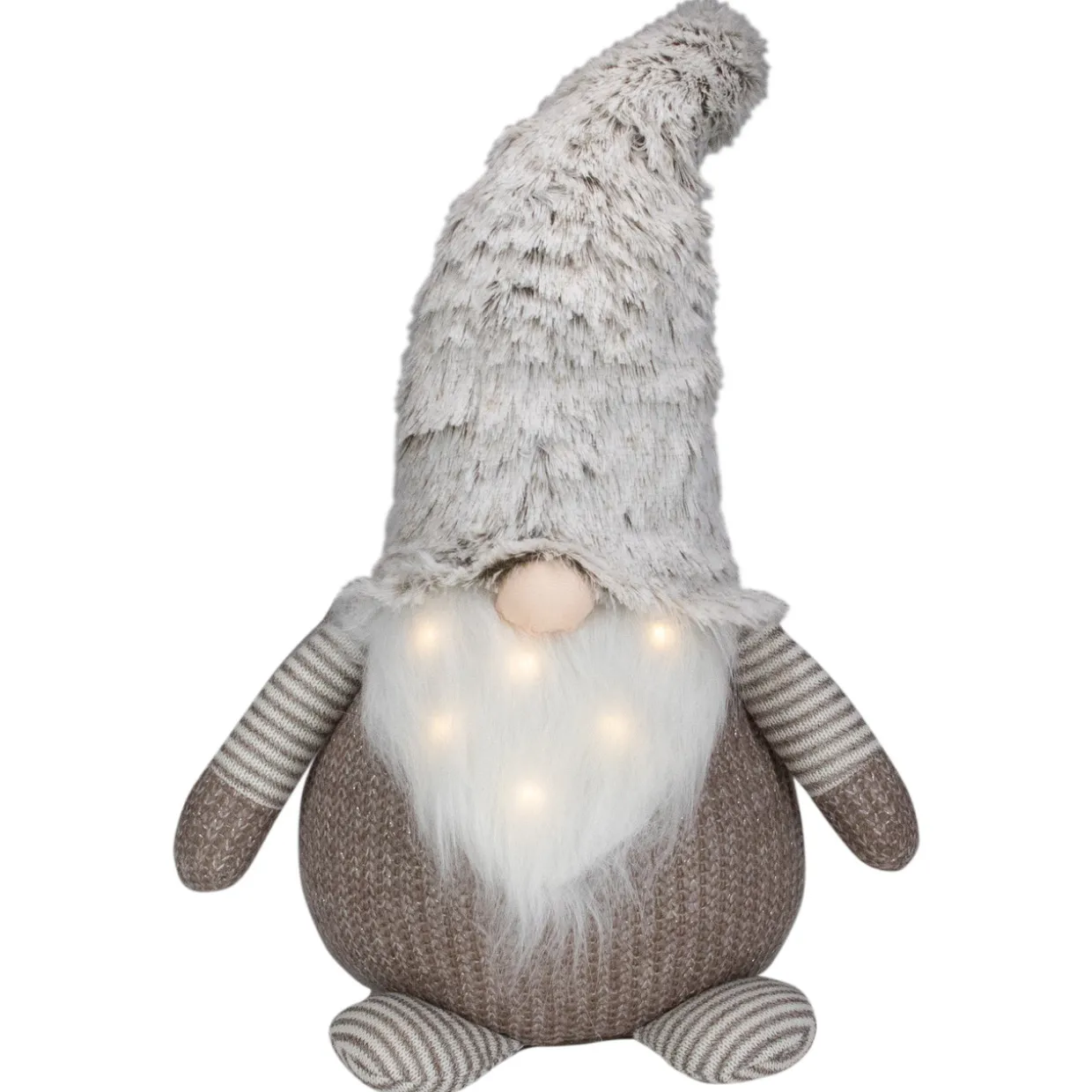 - Led Lighted Brown And White Plush Knit Christmas Gnome