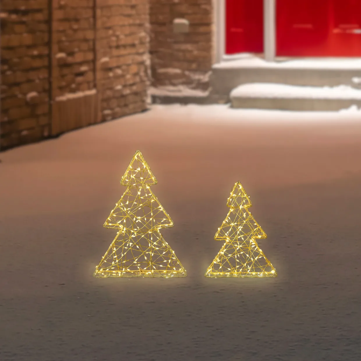 - Led Lighted Gold Wire 3D Christmas Trees; Set Of 2
