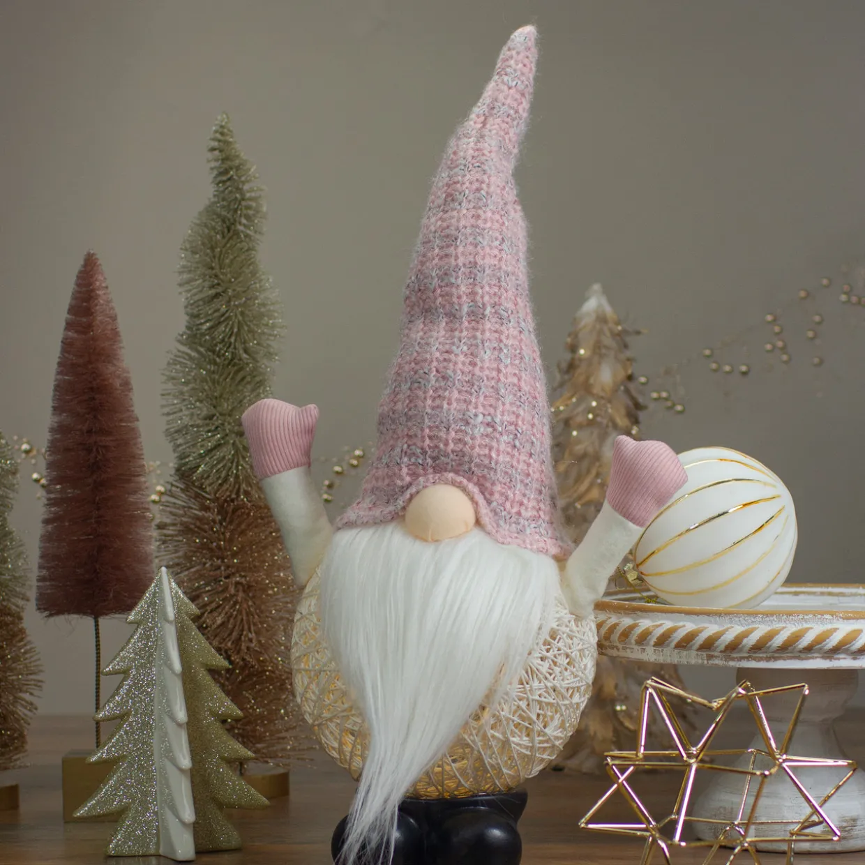- Pink Chubby Lighted Christmas Gnome