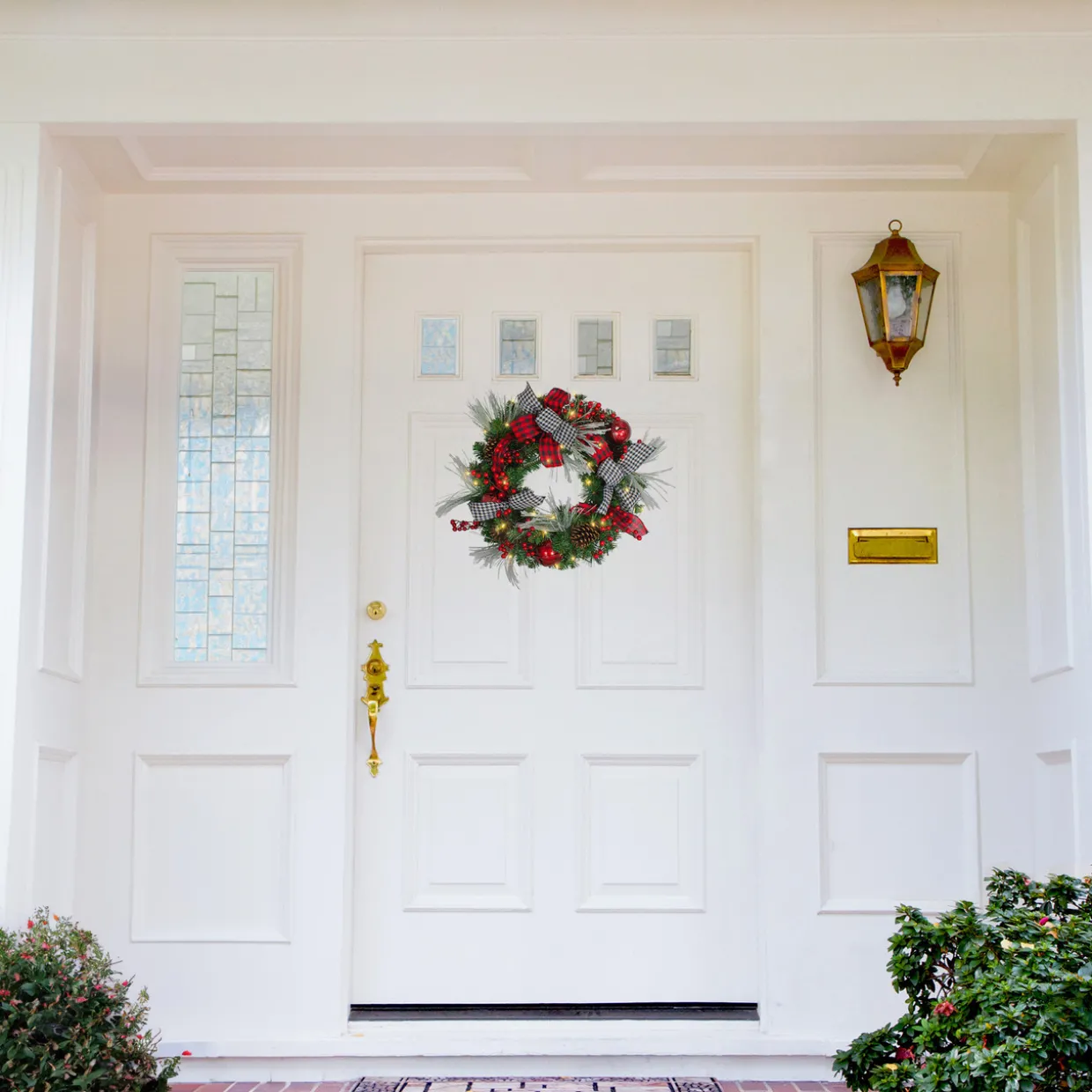 - Decorative Pre-Lit Plaid Bows And Berries Christmas Wreath