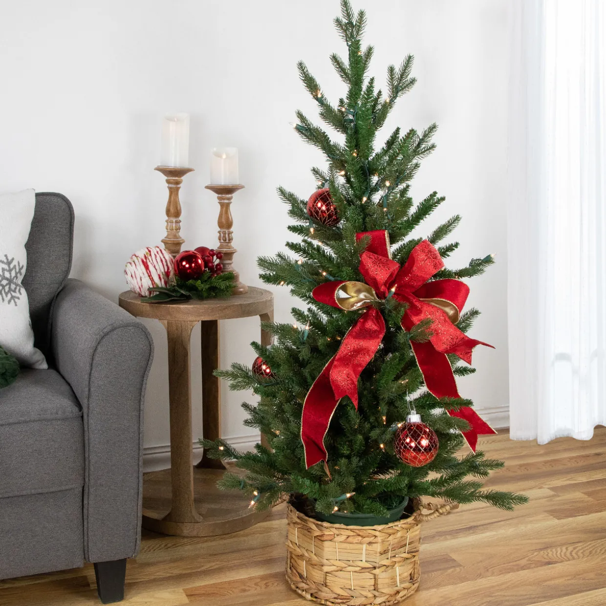 - Lighted by 150 clear mini incandescent lights
