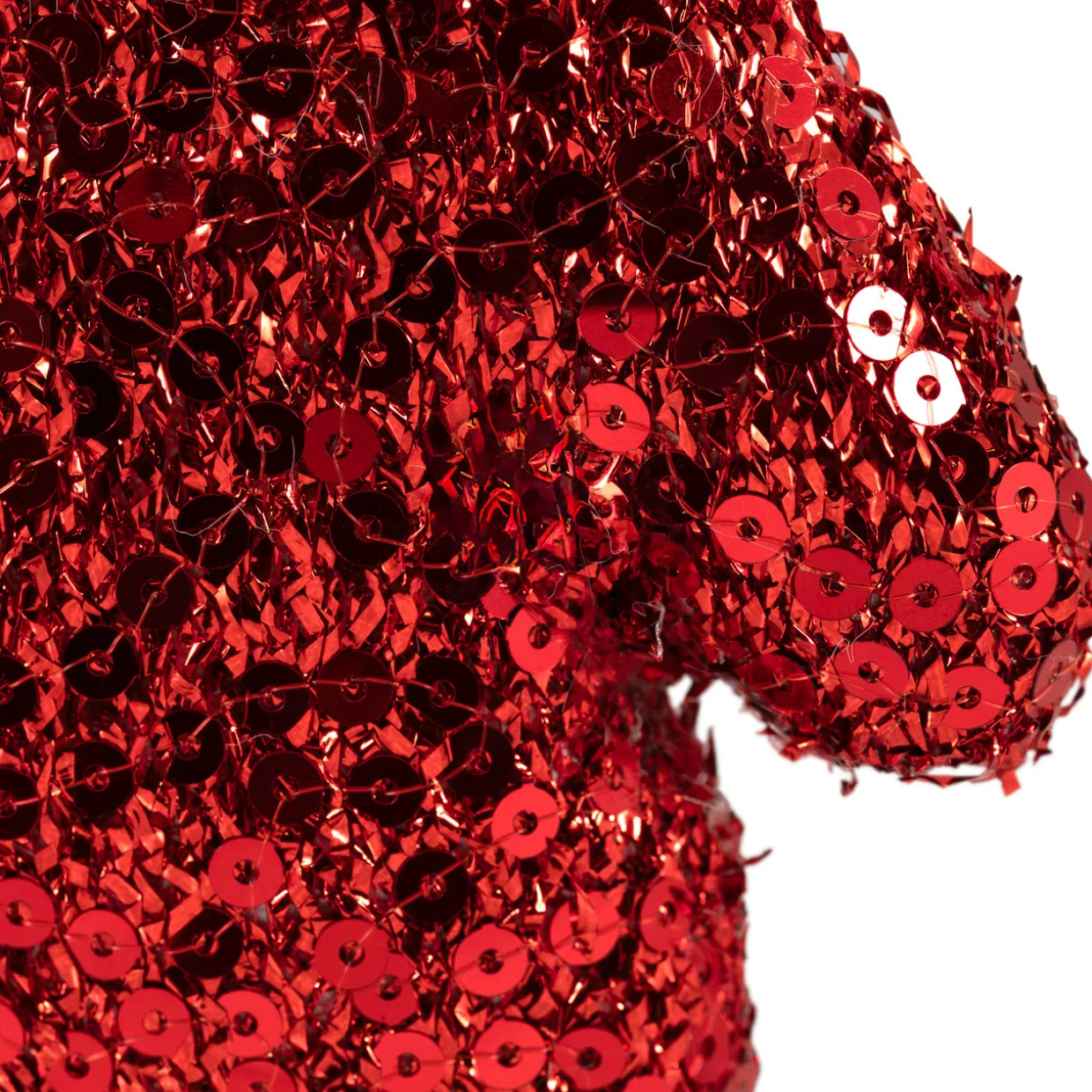 - Solid red winter mitten covered in red sequins