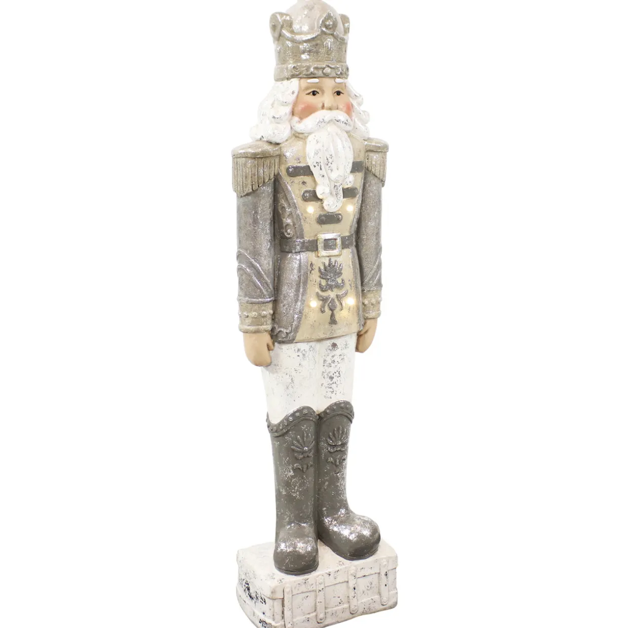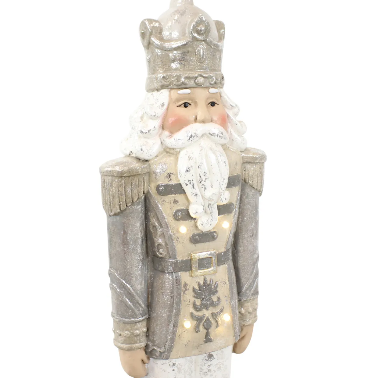 - CLASSIC HOLIDAY NUTCRACKER: This powerful nutcracker stands ready to serve with his feet together and arms straight at his sides. A silver crown rests on his head to alert everyone of his noble status.